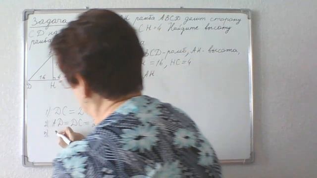 Решение задачи по геометрии. Высота АН ромба АВСD делит сторону СD на отрезки DН= 16 и СН=4. Найти высоту ромба. Геометрия 8 класс.