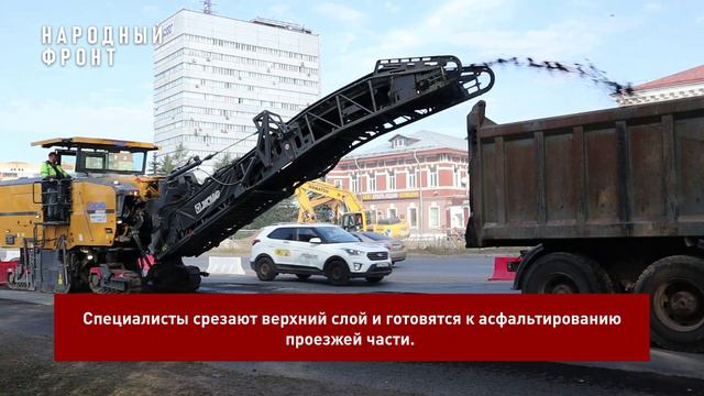 Специалисты срезают верхний слой и готовятся к асфальтированию проезжей части.