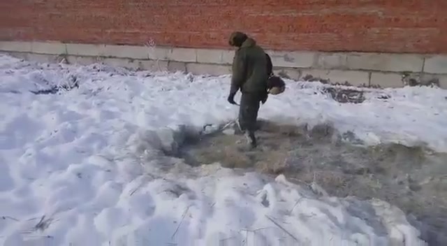 Солдаты, зимой косят траву недалеко от своей казармы. #прикол #армия #солдаты #зима