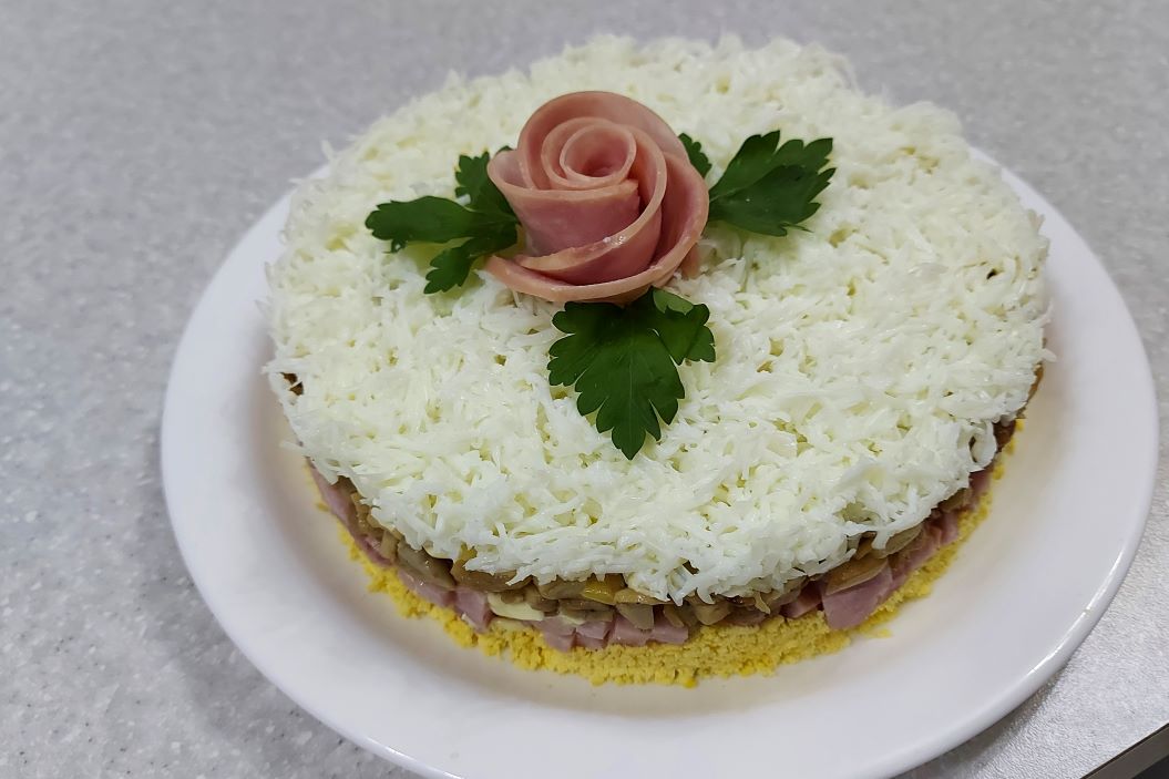 Салат самый мой любимый, самый вкусный и самый нежный. Готовлю его на все праздники. Рецепт: ветчина 250 гр. грибы 250 гр. лук 100 гр. яйца 4 шт. майонез масло растит. Готовьте с удовольствием!