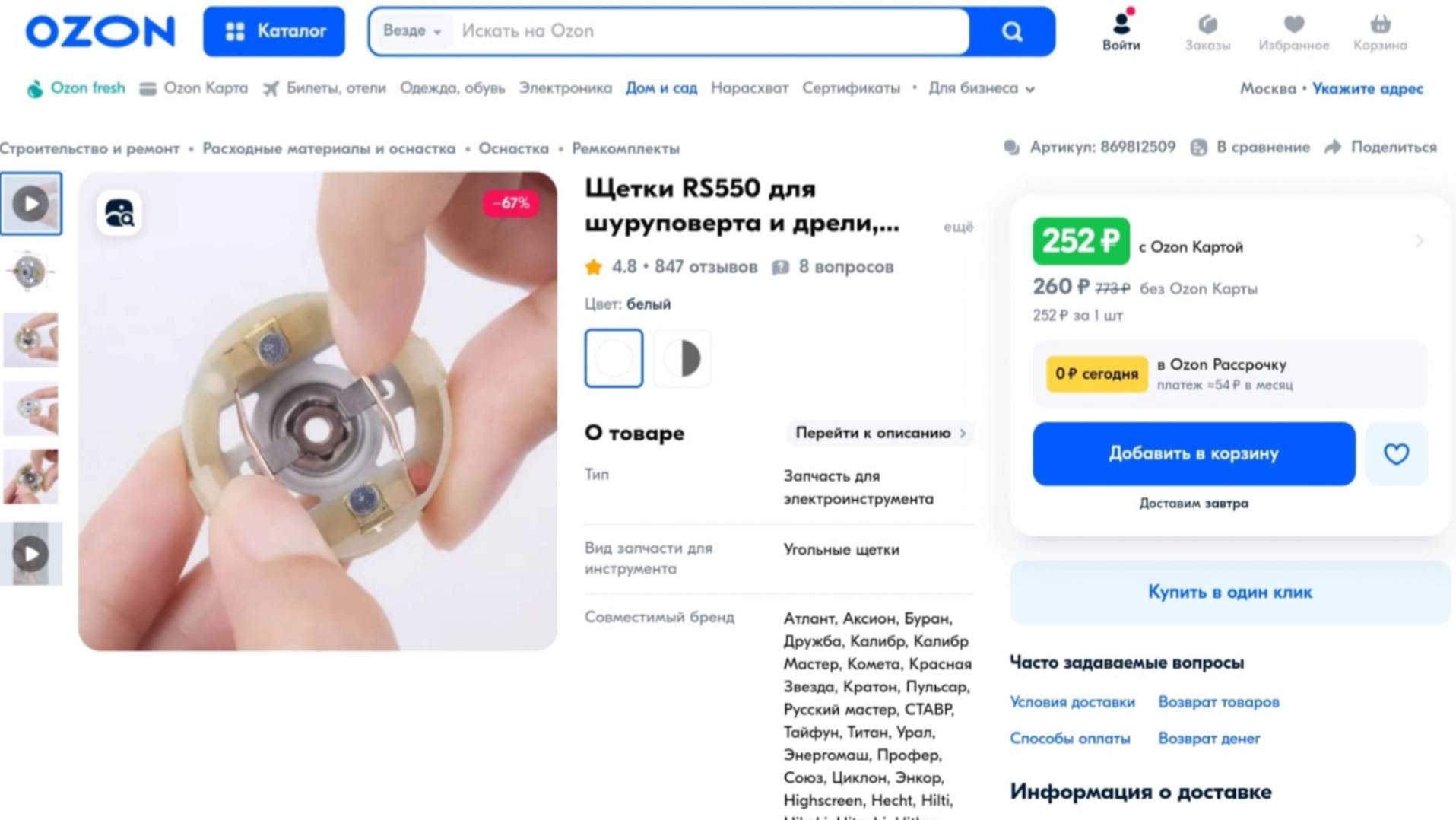 Одна из щеток в моторе пилы заказчика рассыпалась через 2 года усиленного использования в саду. По ссылке на озоне заказала щеточный узел (на заставке к видео изображена страница товара) https://www.ozon.ru/product/shchetki-rs550-dlya-shurupoverta-i-dreli-lobzika-bosch-p-i-t-zenit-metabo-makita-vihr-869812509/?__rr=1&at=mqtkq2GwlhxX0D6Gf9DXwLRU2plqEjS2PpRnqso6Dpxv Все размеры кроме высоты подошли идеально. В результате встал вопрос как завальцевать крышку узла. Паяльник и припой Kaina нам в помощь. Припой на материал лег намертво даже без флюса. Узел обошелся менее 300р. Новый мотор даже с учетом распродажи на китайский новый год в среднем стоил бы 700.