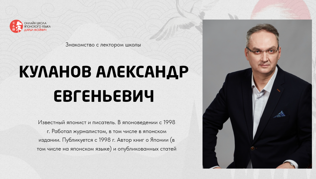 Записаться на бесплатную лекцию «Какой мы видим Японию и какая она на самом деле»: https://clck.ru/39ET7t Курс из 5 бесплатных уроков по культуре и истории Японии с известными японистами https://clck.ru/39ETAA Вы получите уникальный глубокий материал, которого не найдёте в открытом доступе и с пользой проведете время. Приветствуем вас в самой крупной в СНГ онлайн-школе японского языка, культуры и истории Японии Дарьи Мойнич. С 2012 года на онлайн-курсах Школы занимаются ученики от 12 до 65 лет из 15 стран мира. Наши преподаватели работают в лучших учебных заведениях Москвы, Санкт-Петербурга, Токио и Тель-Авива. Для нашей Школы они записали лекции на основе своих диссертаций, книг и научных трудов. Приглашаем вас отправиться вместе с нами в увлекательное виртуальное путешествие по Японии! Став частью нашего большого и дружного сообщества, вы познакомитесь с традициями и культурой Японии. И, конечно же, сможете выучить японский язык для себя, путешествий в Японию, общения с японцами, работы и учебы. Присоединяйтесь к нашему ТГ-каналу по ссылке ⤵️ https://t.me/+wt3k8nuNA2A2NzAy С любовью, онлайн-школа японского языка, истории и культуры Японии Дарьи Мойнич.