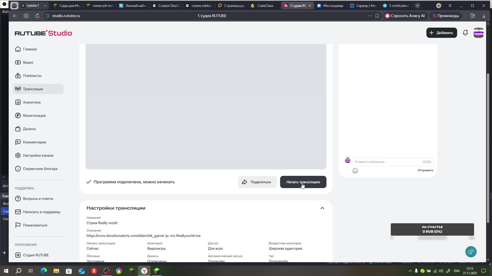 https://www.donationalerts.com/r/danchik_gamer ip: mc.Reallyworld.me