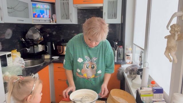Готовлю с помощниками тесто для блинов