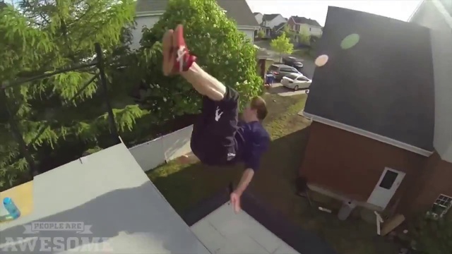 Парни придумали новый вид развлечения , прыгать с крыши на батут.