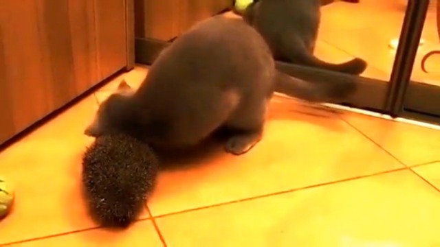 Плюшевый британец чешется об ежика