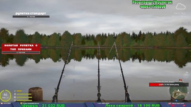 Поддержка донатом https://www.donationalerts.com/r/kalyamba11 Альтернативный донат https://new.donatepay.ru/@1032463 5536913964533059 карта Тинькоф Если стрим лагает,смотри стрим на трово https://trovo.live/s/Kalyamba_na_Ribalke Мой ВК - https://vk.com/kalyantv НИК в игре kalyan11 НАШ ДИСКОРД СЕРВЕР https://discord.gg/mSbnTJK8TB Заказ водоема на 1 час - 500р ( весь стрим 2500р ) Модерка на канале 1200р ( каждая следующая на 100р больше) Озвучка доната на 40р,50р,100р,200р,300р,500р,1000р ✅Призы в рулетке "ЗОЛОТАЯ" ✔ ЗОЛОТО ✔ ПРЕМ ✔ КАТУШКИ РАПТОР 40, АЗИМУТ 10000, СИЛЬВЕР 80, ТАЙГА с 30 ✔ ПАЛКИ ПИЛКЕРНАЯ, ДОНКА МОРСКИЕ, ✔ РОД ПОД, СТУЛЬЯ ✅Призы в рулетке СТАНДАРТ : ✔ катушка "РАПТОР 40" ✔ катушка "АЗИМУТ 10000" ✔ катушка "ТАЙГА С30, С40," ✔ катушки 60 для медного ( ЭВИИ, НАТОРЫ, ГОЛДА, и тд) ✔ ПИЛКЕРНОЕ УДИЛИЩЕ КОРОЛЕВА ОКЕАНА ✔ Морское Донное удилище ✔ прем ( 3, 7, 30 дней) ✔ золото ( 1, 3, 5, 10, 20 ,50) ✔ билет на море ( 1, 3, 5 дней) ✔ голд наживка и др. ✅Призы в рулетке "СТАРТОВАЯ" ✔ катушка "silver80" ✔ катушка "БЕЛЫЙ КАЛИБР" ✔ катушка "Черный калибр" ✔ катушка "Протон" ✔ катушка "Нарга 6000" ✔ Набор Фидерист и спинингист ✔ Карповик Фортуна ✔ фидерные удилища ✔ прем, золото, алкашка, наживки и тд P.s Рулетка это не казино, а награда за поддержку стримера. Вечный ТОП ПОДДЕРЖКИ (11.05.2024) 1. Dimon_pokemonchik 119 784 2. Interceptor 75 508 3. Skreb79 71 261 4. une personne 68 619 5. Нарвал77 31 550