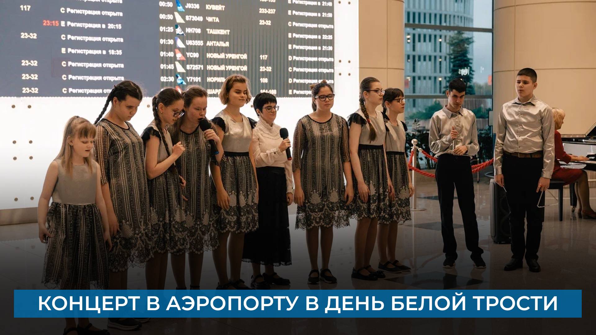 Необычный концерт состоялся в аэропорту «Домодедово» в Международный день белой трости. Учащиеся школы-интерната № 1 города Москвы выступили перед посетителями авиагавани: пели песни, читали стихи и исполняли фортепианные композиции. Как это было – расскажем в следующем сюжете.
