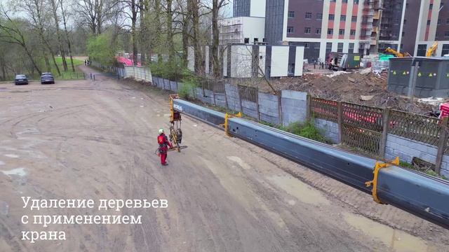 Удаление деревьев с применением крана