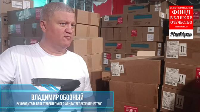 В тридцать первый раз неравнодушные люди нашей страны и Благотворительный Фонд "Великое Отечество" отправили на фронт более 15 тонн медицинских препаратов. Эти лекарства предназначены для поддержания здоровья наших солдат и спасения жизней раненых бойцов, а также включают большое количество медицинских расходных материалов. Все это фонд передал фронтовым медикам, работающим на передовых позициях специальной военной операции. Благодаря вашей поддержке, мы можем приобретать и доставлять на Донбасс все необходимые медикаменты. Присоединиться к нашему делу и внести свой вклад в приближение нашей великой победы очень просто. Для этого достаточно перечислить денежные средства на закупку медикаментов для бойцов зоны СВО одним из предложенных способов: 1. Перечислением с банковской карты с сайта Фонда. 2. Платеж из кабинета Сбербанк Онлайн. 3. Сделать платеж из интернет-банка с использованием QR-кода. 4. Осуществить платеж по реквизитам на сайте: https://fondvo.ru/kak-pomoch/ Канал Фонда в Телеграмме: https://t.me/fondvo Группа Фонда в Одноклассниках: https://ok.ru/fondvo Группа Фонда в ВКонтакте: https://vk.com/fond_vo