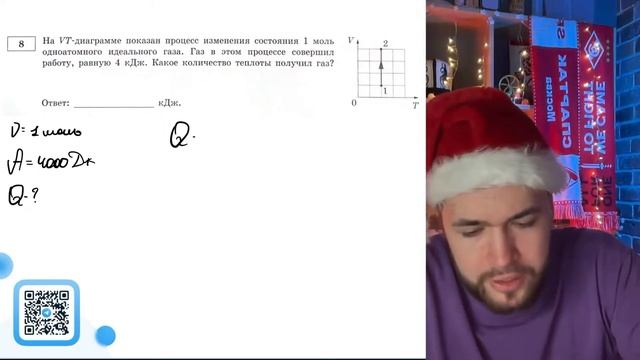 На VТ-диаграмме показан процесс изменения состояния 1 моль одноатомного идеального газа - №21266