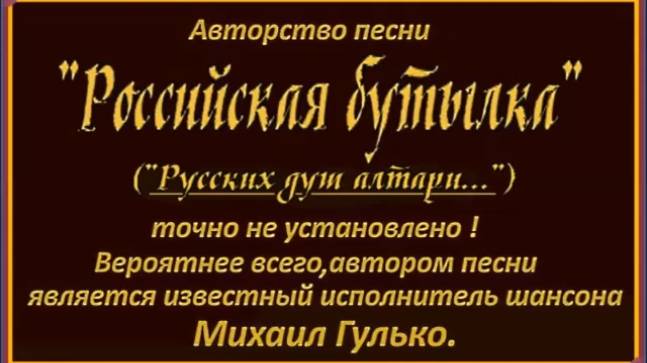 Анатолий Лебедев из Питера. ЛЮБИТЕЛЬСКОЕ ВИДЕО Анатолия Лебедева с УЛУЧШЕННЫМ исполнением песни "РОССИЙСКАЯ БУТЫЛКА" ("Русских душ алтари") под собственный аккомпанемент на семиструнной гитаре. Авторство песни,как и время её создания точно не установлено. Вероятнее всего автором является известный исполнитель шансона МИХАИЛ ГУЛЬКО. Видеозапись исполнения песни сделана в 2020 году. Улучшение качества исполнения и монтаж видеоролика от 17 января 2025 года.