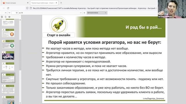 Вебинар Агрегатор – быстрый старт в практике психолог