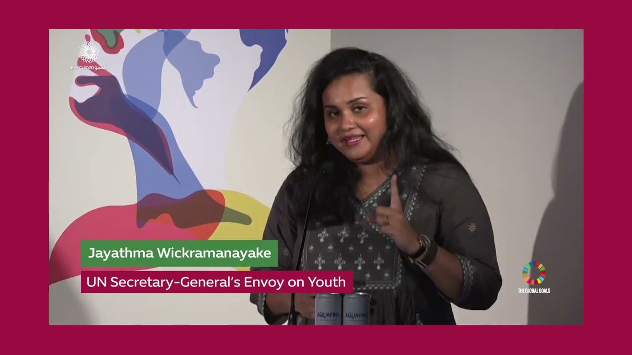 Jayathma Wickramanayake, the United Nations Secretary-General's Envoy on Youth, is working towards empowering younger generations and including their needs and voices in the movement towards achieving the Sustainable Development Goals by 2030. Join her and lead the change towards a brighter tomorrow at Expo 2020 Dubai’s Global Goals Week. Follow us on: ----------------------- Facebook | https://www.facebook.com/Expo2020Dubai/ Instagram | https://www.instagram.com/expo2020dubai/ Twitter | https://twitter.com/expo2020dubai LinkedIn | https://www.linkedin.com/company/expo-2020-dubai/ Bringing you The World’s Greatest Showcase of Human Brilliance & Achievement. Visit: http://www.expo2020dubai.com/ and be part of an unforgettable experience. #Expo2020 #Dubai #ExpoGlobalGoals
