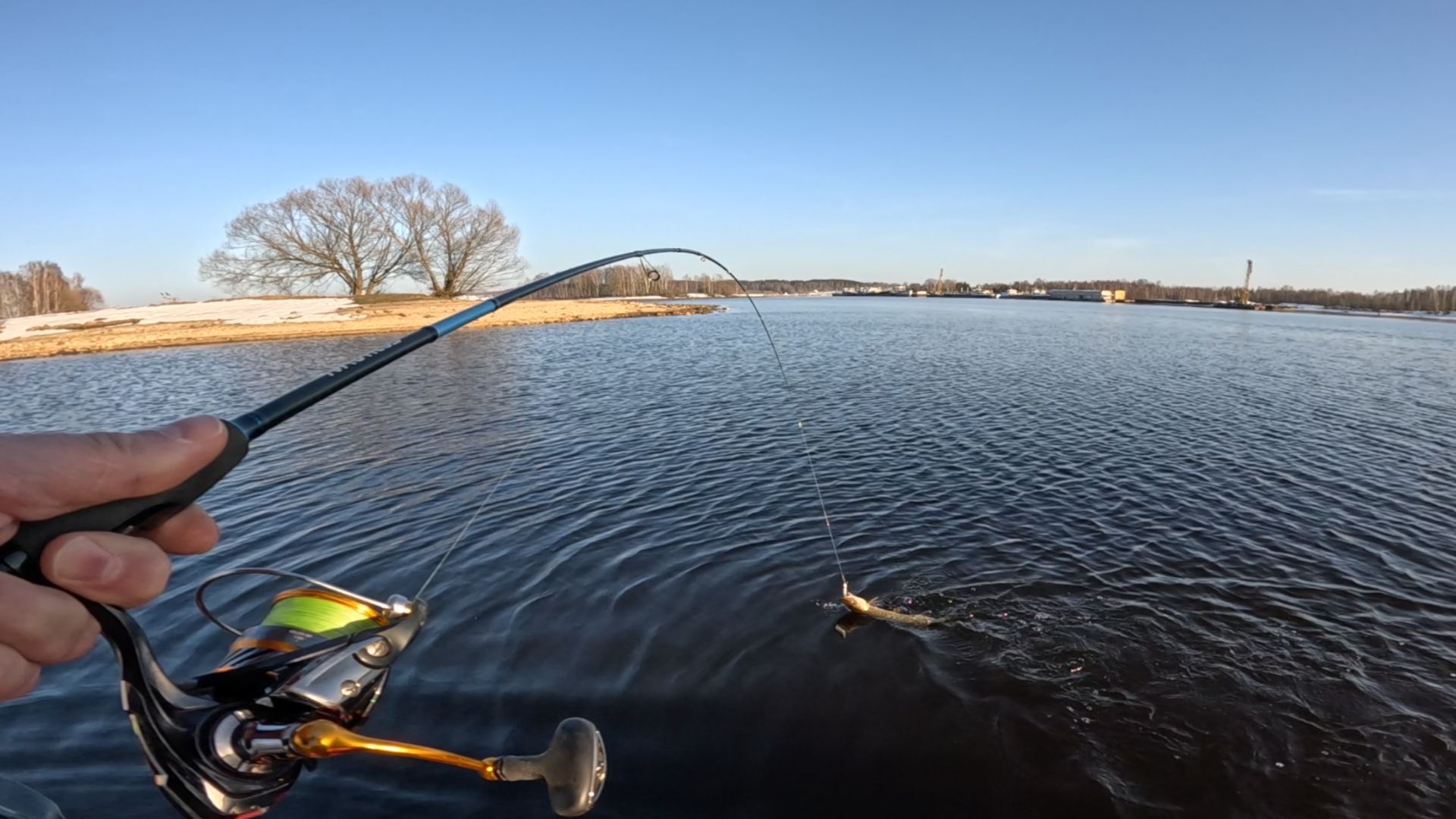 Первая весенняя рыбалка на спиннинг.Весенние щуки гнут спинниг.
