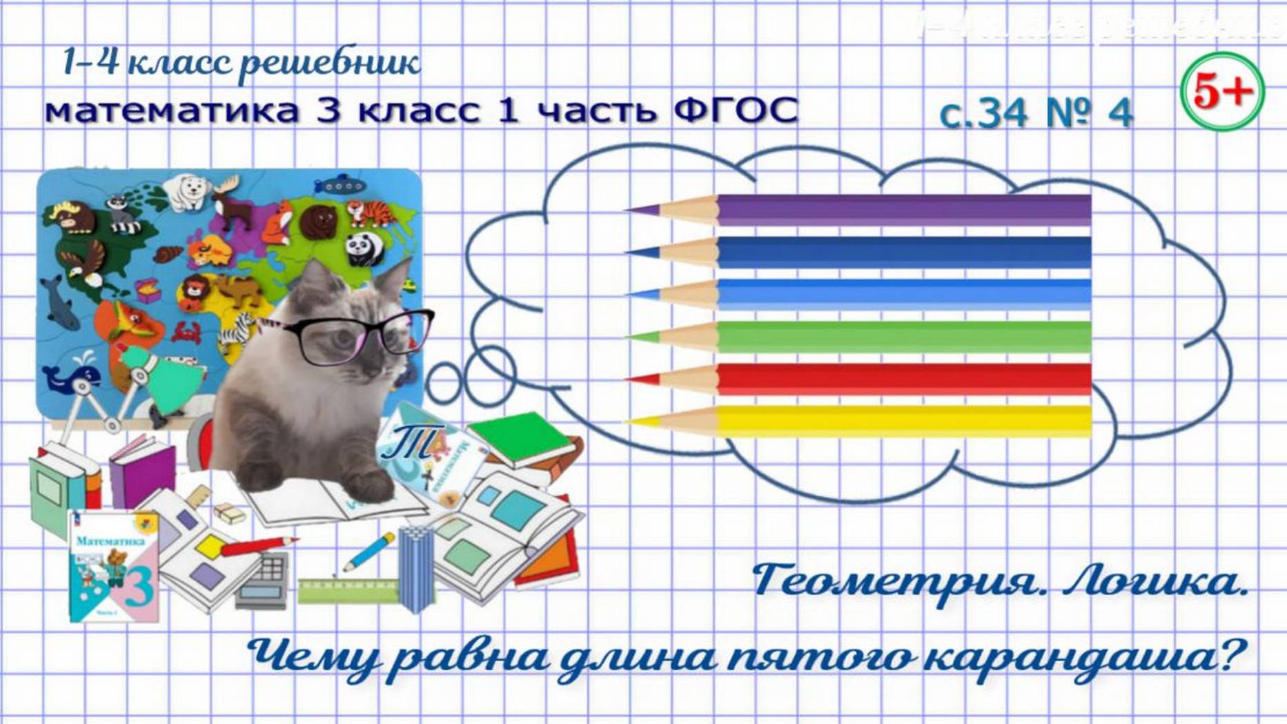 Стр. 34 № 4 Геометрия, логика. Чему равна длина пятого карандаша? математика 3 класс 1 часть ФГОС