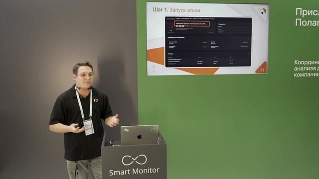 «Ampire x Smart Monitor» — менеджер продукта Георгий Мелихов на примере конкретного сценария кибератаки демонстрирует на стенде Smart Monitor, как участники киберучений используют Smart Monitor для выявления и анализа инцидентов информационной безопасности.