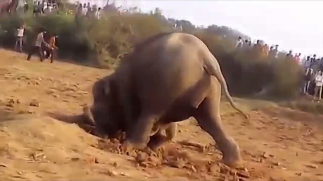 Люди были очень удивлены, когда у их деревни появилась слониха и начала выкапывать землю.