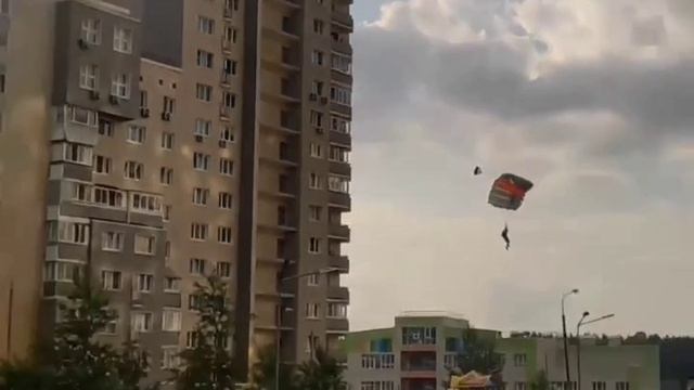 В подмосковной Балашихе парашютист спрыгнул с 18-го этажа. Высота для прыжка с парашютом опасная, но все кончилось хорошо - купол раскрылся и никто не пострадал.