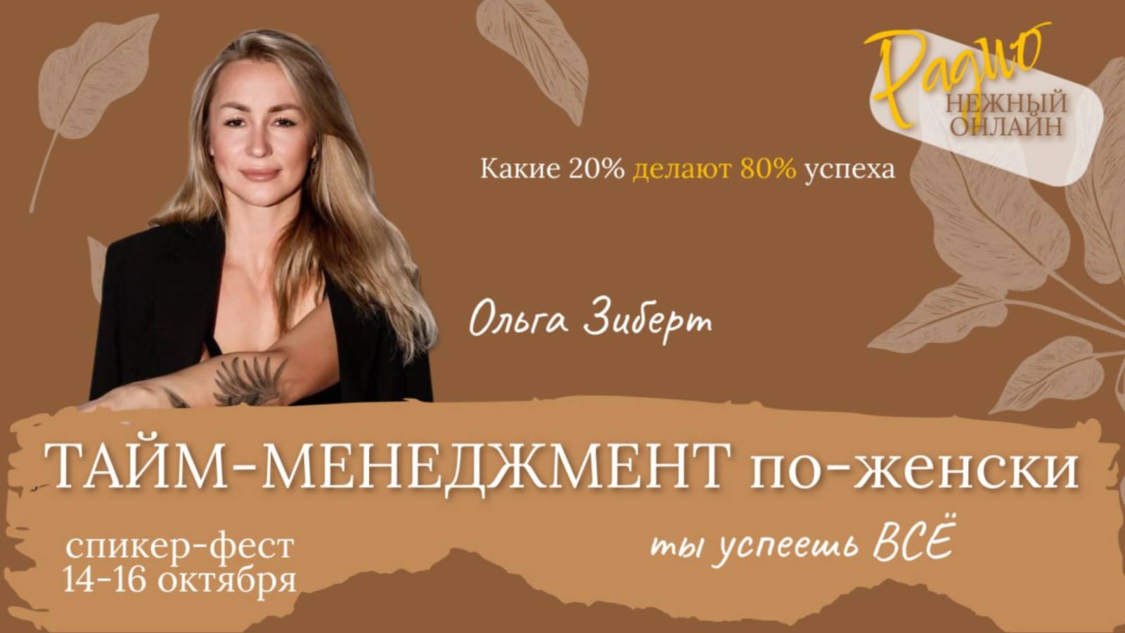 Тайм-менеджмент по-женски: Как планировать дни, чтобы успевать реализовываться, не жертвуя личной жизнью Ольга Зиберт (https://t.me/sexolog_zibert) 🔝 Беспроигрышный метод. 🔝 Неочевидные факты. 🔝 Какие 20% делают 80% успеха. С вами в эфире Ольга Зиберт (https://t.me/sexolog_zibert) - психолог, семейный терапевт, сексолог Эксперт Аргументов и фактов TOP эксперт по работе с парами 2024 Победитель в номинации «Успешная мама Мотиватор года 2022» Победитель «Батла Ораторов 2023» 23 года в отношениях Двое взрослых детей. Предприниматель 17 лет Успеваю всё! 👉🏻 ПОДПИШИСЬ (https://t.me/sexolog_zibert) 🔻🔻🔻🔻🔻🔻🔻 Регистрируйтесь и получайте подарки от наших экспертов! ⬇️⬇️⬇️⬇️⬇️ ЗАРЕГИСТРИРОВАТЬСЯ https://app.leadteh.ru/w/eu7cV ______________________________________ 🎙Если вы хотите стать спикером радио, попасть на подкаст, открыть свою передачу, пишите 👉 сюда https://t.me/m/sApQQFV0ZDgy
