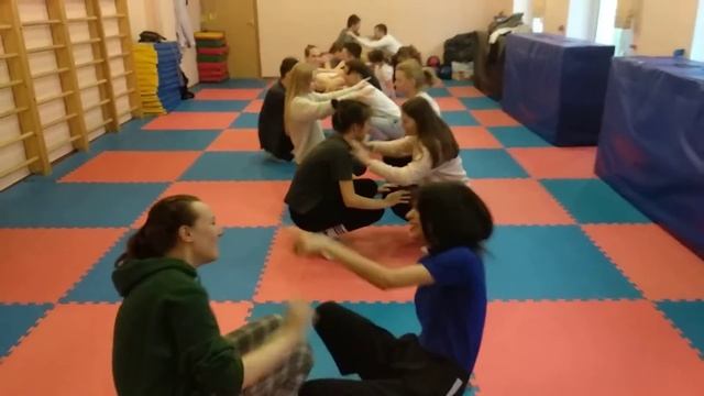 Урок ОБЖ в школе №904 по теме "Основы самообороны". Обучаемся падать правильно на спину. Подробности на https://www.kuryshkin.com/kak-pravilno-padat
