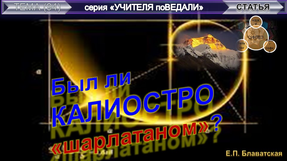 БЫЛ ЛИ КАЛИОСТРО "ШАРЛАТАНОМ"? - статья Е.П. Блаватской (1831-1891)