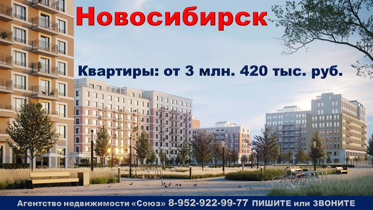 Подпишитесь на нас. Благодарим !!! https://www.youtube.com/@nedvigimoct/videos - мы на Ютубе https://dzen.ru/nedvigimoct?tab=longs&utm_referrer=dzen.ru - мы на Дзене https://rutube.ru/channel/27083000/videos/ - мы на Рутубе https://vk.com/club223108371 - мы в ВК https://ok.ru/lyubayan - мы в Ок Каталог новостроек Новосибирска - https://nedvigimoct.allrealty.pro/?regionId=54#catalog Агентство недвижимости «СОЮЗ» Покупайте: квартиру в Новосибирске. Краснообск рп, Центральная ул., м. Площадь Маркса ( 15 минут на авто) Агент по новостройкам: 89529229977 (WhatsApp) Цены на квартиры точно такие же как и у застройщика. Квартиры продаются БЕЗ РИЭЛТОРСКОЙ КОМИССИИ !!!. Ст. квартиры: от 3 млн. 420 тыс. руб. Ежемесячный платеж: 16 383 руб. при ставке 6% Площадь общая: 22,26 м2 - 32,98 м2 1к. квартиры: от 4 млн. 230 тыс. руб. Ежемесячный платеж: 20 263 руб. при ставке 6% Площадь общая: 32,56 м2 - 76,34 м2 2к. квартиры: от 7 млн. 460 тыс. руб. Ежемесячный платеж: 35 736 руб. при ставке 6% Площадь общая: 55,43 м2 - 169 м2 3к. квартиры: от 9 млн. 800 тыс. руб. Ежемесячный платеж: 46 946 руб. при ставке 6% Площадь общая: 83,86 м2 - 120,97 м2 Срок сдачи: сдан - 1 квартал 2026 Срок выдачи ключей: 2 квартал 2024 - 3 квартал 2026 Договор:ДДУ Тип дома: кирпично-монолитный Тип отделки: подготовка под чистовую отделку Парковка: подземная Потолки: 2,71 м. Преимущества:Транспортная доступность . Развитая социальная и коммерческая инфраструктура. Широкий выбор планировочных решений. Благоустроенная территория. . Круговой бульвар. Детские и спортивные сооружения. Описание комплекса: Жилой комплекс расположен в поселке Краснообск на левом берегу Оби, на пересечении улицы Центральная и Советского шоссе. Рядом ‒ остановки транспорта, выезды на транспортные магистрали. До Бугринского моста ‒ 15 минут на автомобиле. До станции метро «Площадь Маркса» ‒ 35 минут на автобусе, 20 минут на автомобиле. В 15-20 минутах от жилого района расположен крупный торговый центр. Внутри посёлка сформирована необходимая инфраструктура: лицей, школы, детские сады, больница, поликлиника, частные медицинские центры, магазины, спортивные клубы. Жилой комплекс представляет собой крупный жилой район на месте «третьего кольца» ВАСХНИЛа. Это квартальная застройка домами невысокой этажности ‒ 4-6 и 7-9 этажей, с закрытыми от машин безопасными дворами, спортивными площадками и детскими зонами. Достопримечательность района ‒ круговой зелёный бульвар, который объединит жилые дома с камерными дворами, пешеходными и велосипедными маршрутами, прилегающим лесопарком. Первая очередь строительства состоит из двух секционных домов г-образной формы 7-9 этажей, которые образуют квартал. Фасады облицованы керамическим кирпичом и архитектурным бетоном. Первые этажи высокие и оформлены прозрачным панорамным остеклением со стороны улицы. Контрастное горизонтальное разделение объёма зданий цветом и фактурами придаёт им человеческий масштаб. Дома не выглядят монолитными и тяжеловесными. Открытые балконы, прогулочные террасы и террасы на первых и последних этажах задают динамику фасада. Элементы озеленения на кровле оживляют его и делают сопричастным окружающему ландшафту. Круговой бульвар связывает район, объединяя жильё с природным ландшафтом, зонами активности и отдыха, пешеходными и велосипедными маршрутами. Парковое пространство отделяет застройку от существующих участков леса. Бульвар встраивается в смежные пространства лесопарка, камерные сады дворов, зелёные аллеи и тротуары. Он имеет три уровня: де