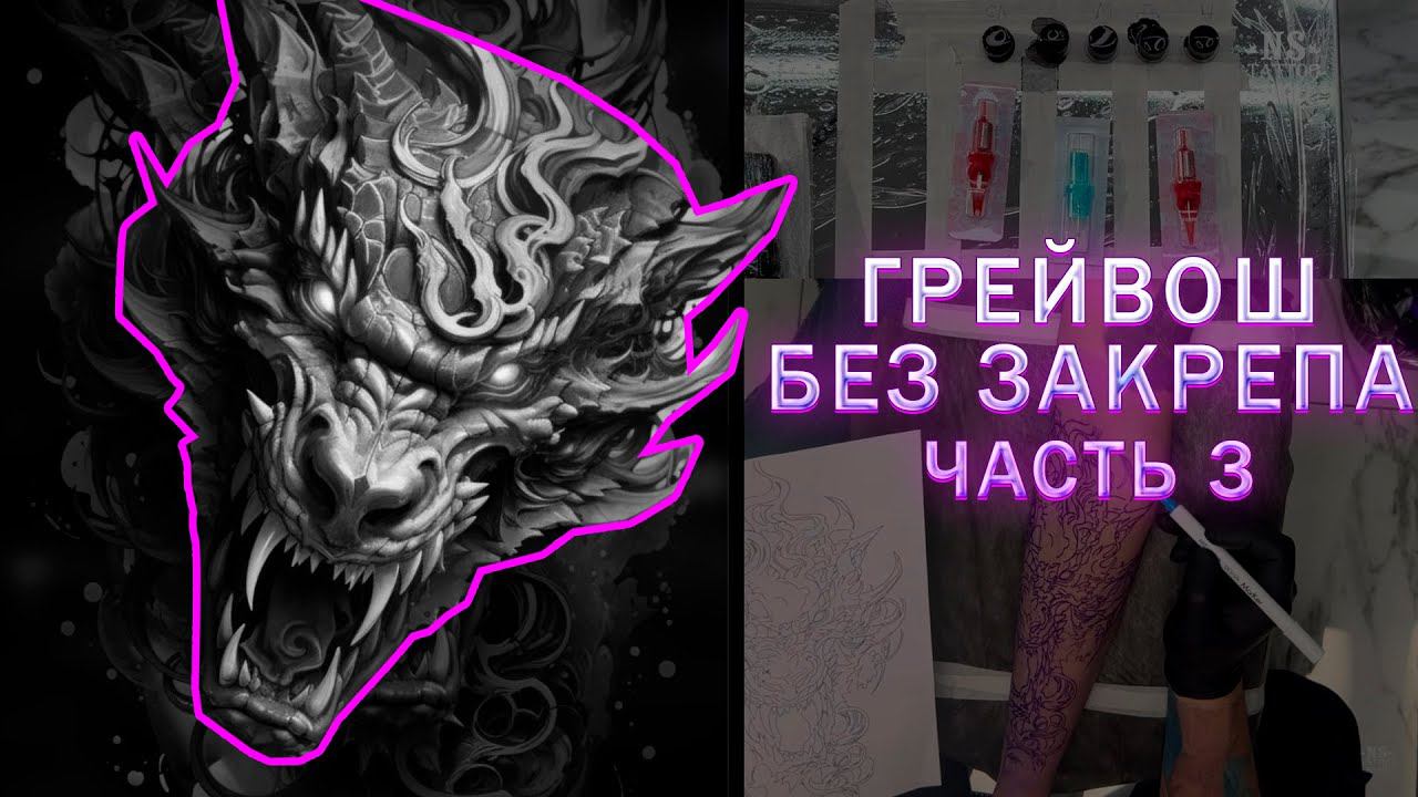 В серии этих видео я наглядно показываю поэтапную работу в технике грейвош — только чёрными пигментами разной концентрации. Несмотря на то, что нижняя челюсть погружена в тень, я стремлюсь изобразить её светлее, нежели на оригинальном эскизе (поскольку затемнить её в дальнейшем не составит труда, а обратная операция невозможна). Для максимально детальной проработки я преимущественно использую иглы формата RL. Смотрите третью часть из новой серии. И заодно заглядывайте на сайт с нашими онлайн и оффлайн курсами: https://ns-tattoo-academy.ru
