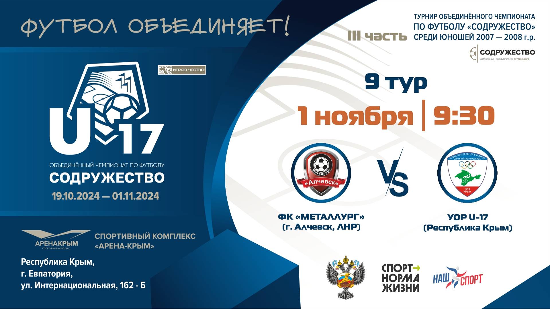 9 ТУР | U-17 | ФК "Металлург" (U-17) (г. Алчевск, ЛНР) vs УОР U-17 (Республика Крым)