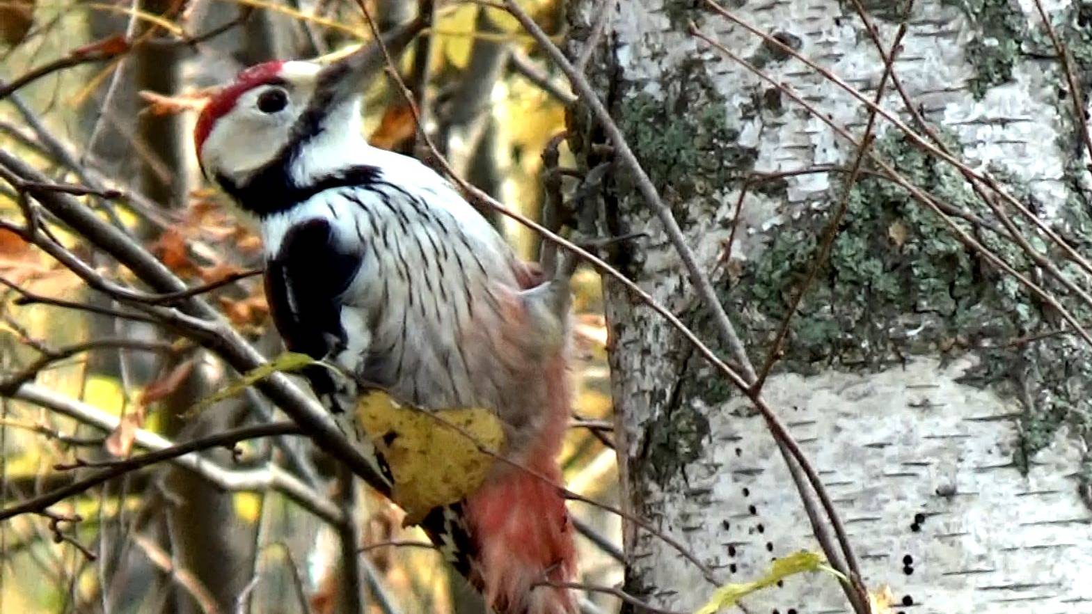 Дятел в осеннем лесу