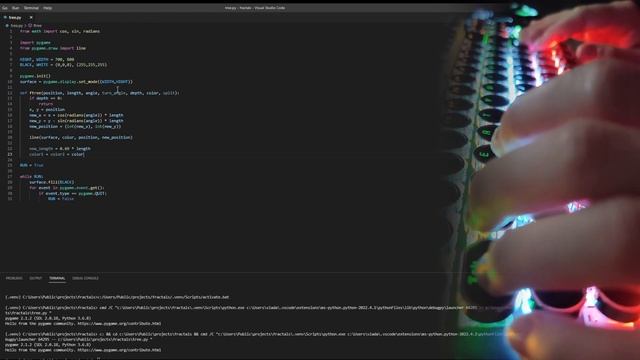 Drawing tree fractal using Python package pygame #asmr #asmrkeyboard #keyboard #mechanicalkeyboard #programming #python #fractal #pygame #pythonprogramming #rgb