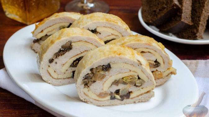 Хорош горячим и холодным в подаче. РУЛЕТ ИЗ КУРИЦЫ С ОМЛЕТОМ И ИЗЮМОМ