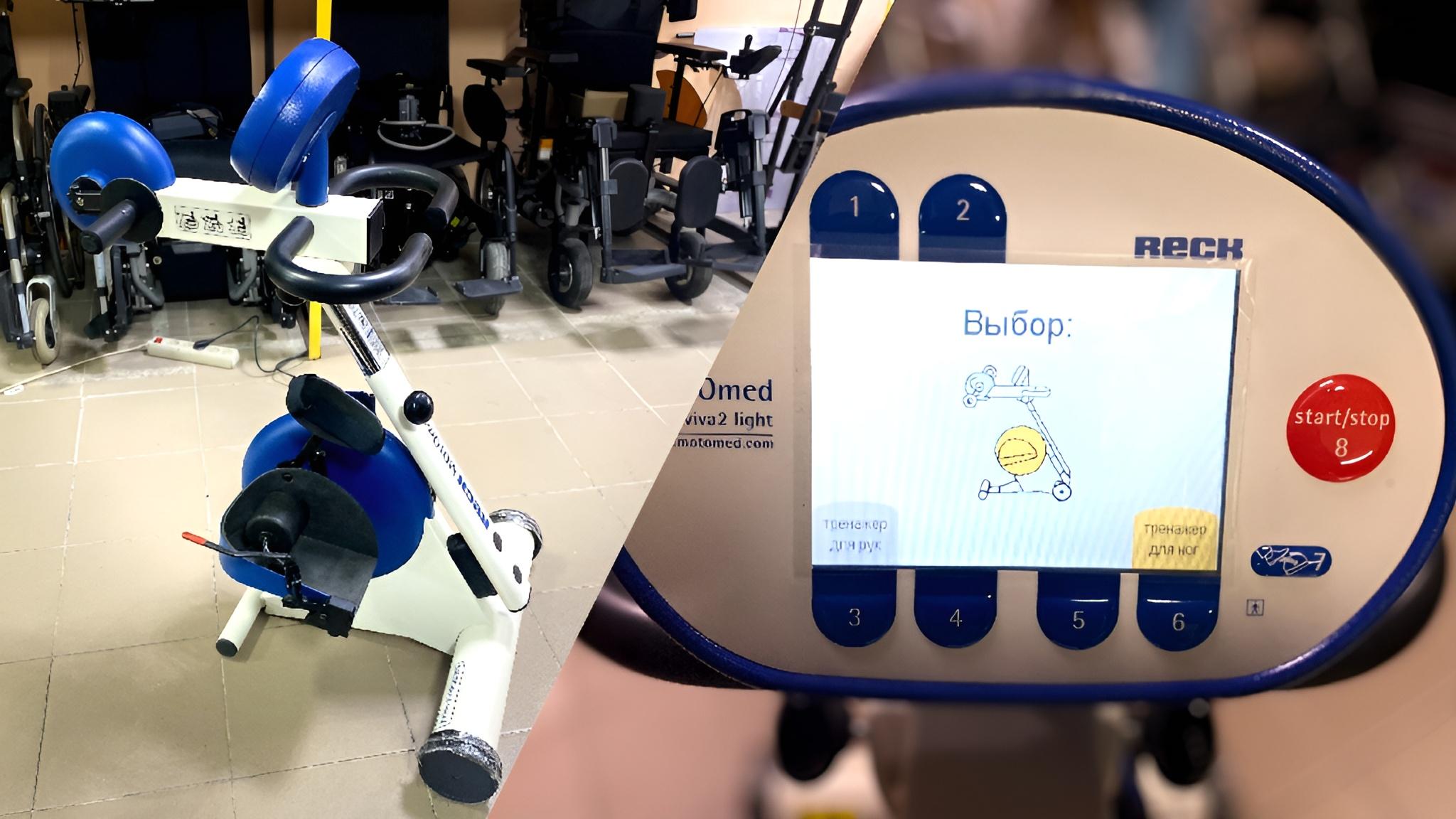 Велотренажер MOTOmed Viva 2 для тренировки ног и рук 2009 г.в. (русифицированный) ⠀ MOTOmed Viva2 оснащен программно управляемым электродвигателем, который обеспечивает высокую скорость вращения. Подходит под все типы инвалидных колясок♿, общему росту. Тренажер с регулируемыми педалями по высоте, размер монитора?11,3 × 8,4 см. ⠀ В комплектацию входят крепления голеней (съемные), держатели ступней. ⠀ ?Функции: ▫️Ассистент установки ног ▫️Пассивная тренировка ▫️Активная тренировка ▫️Сервотренировка ▫️Симметричная тренировка: тренирует "более слабую" сторону тела ▫️Защита движения: для чувствительного распознавания спастики ▫️Набор терапевтических программ ▫️Установленные тренировочные игры ▫️Аварийное отключение ▫️Цветной экран с тактильными клавишами ▫️Регулировка частоты вращений педалей от 1 до 60 об/мин ▫️Настройка уровня сопротивления мотора от 1 до 10 ▫️Регулировка продолжительности тренировки от 0 до 120 минут ▫️Функция паузы ▫️Оценка результатов тренировки: продолжительность, дистанция, симметрия, затраченная энергия, тонус, среднее и максимальное значение мощности в кВт в активном режиме, соотношение продолжительности тренировок в активном и пассивном режимах выводятся на экран в режиме реального времени или в виде общего анализа после тренировки ⠀ ❕Для получения более подробной информации ? +7 985 233-20-88 (WA, Viber, Telegram) ?Отправим в любой регион России