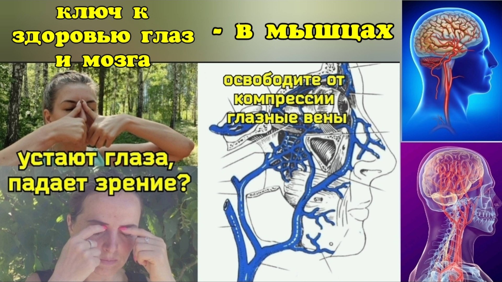 Жизнь мозга и глаз зависит от верхней глазной вены, но она блокируется спазмом мышц. Упражнения