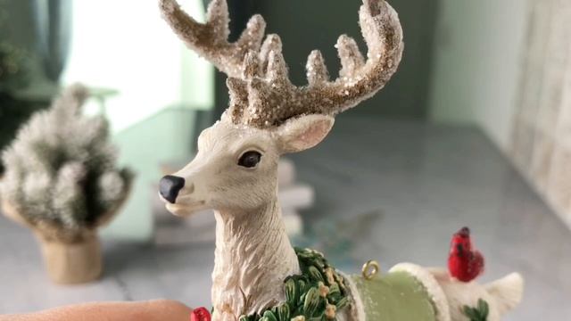Ёлочная игрушка ОЛЕНЬ И ВИРГИНСКИЙ КАРДИНАЛ, полистоун, 12 см, E1021-2