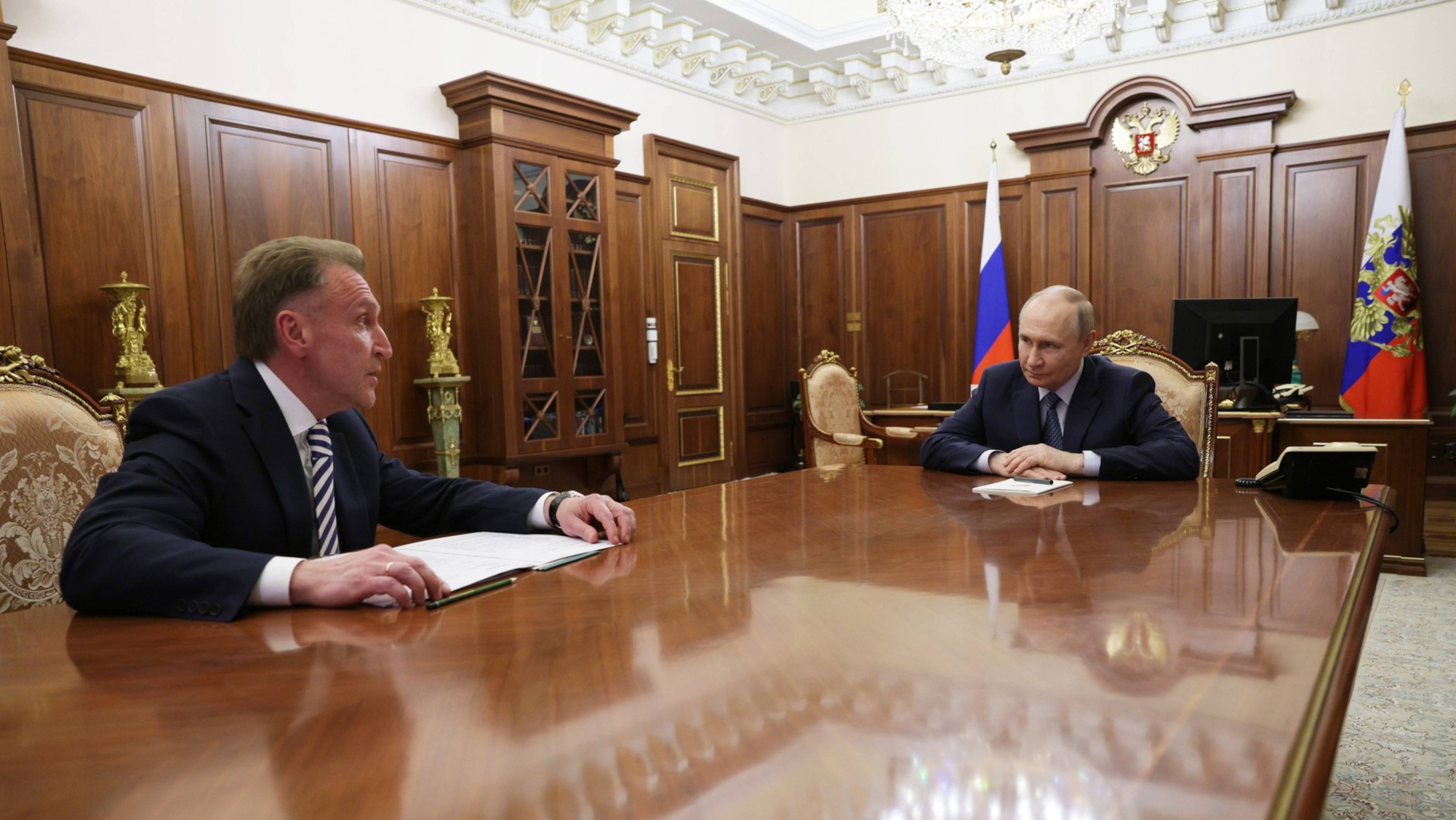 Владимир Путин с председателем Государственной корпорации развития «ВЭБ.РФ» И. Шуваловым, 5 августа