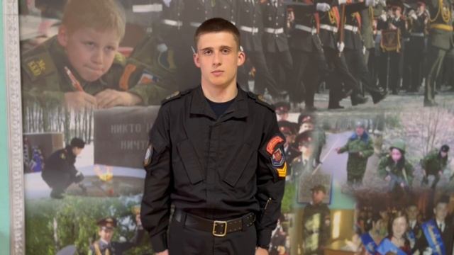 Кадет 9Б класса Никита Гостинцев читает стихотворение Сергея Йоффе: «Учитель военного дела»