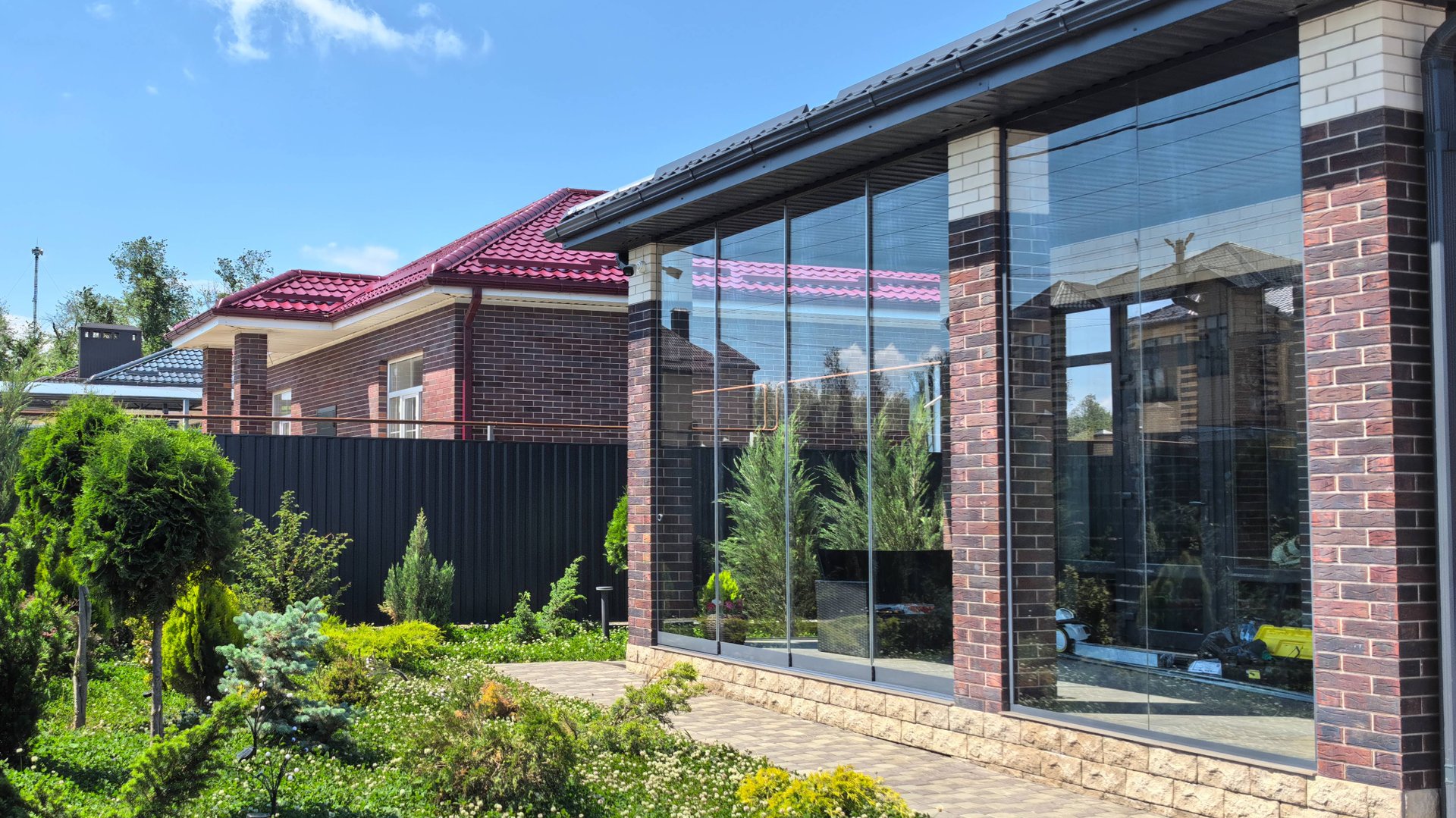 Это современное решение, которое позволяет максимально открыть пространство и создать уникальный внешний вид вашего дома. Такие конструкции идеально подходят для веранды, террасы или балкона, обеспечивая панорамный вид на окружающий ландшафт.