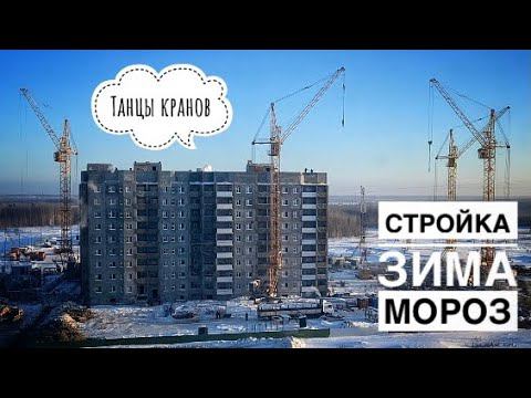 Танцы кранов #4. Зимняя стройка. Башенные краны в сильный мороз. Tower cranes in winter
