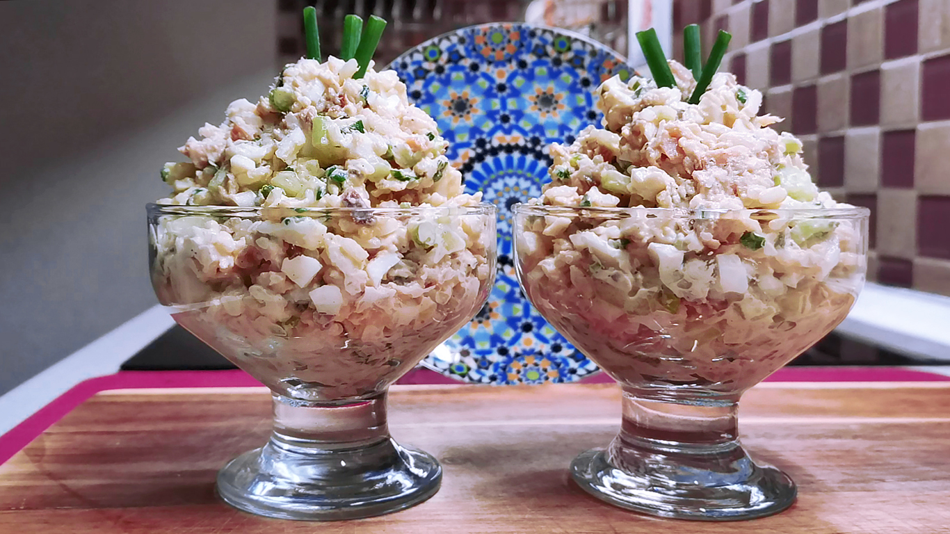 Такого салата с рыбой всегда готовим много и никогда на второй день ничего не остается. Очень вкусный салат с горбушей горячего копчения. Можно приготовить вместо целого ужина или на прадзничный стол поставить. Этот рыбный салат всегда у нас заканчивается первым. Ингредиенты: Горбуша горячего копчения - 400 гр Вареные яйца - 5 шт. Вареный рис - 300 гр (в сыром виде 100 гр) Свежий огурец - 180 гр Зеленый лук - 70 гр Майонез, соль, перец - по вкусу *************************************************************************** Одноклассники https://ok.ru/group/60739114565686 ВКонтакте https://vk.com/club194110412 Яндекс Дзен https://zen.yandex.ru/rozovybaklazan Пульс https://pulse.mail.ru/source/1365122777268907232/ *************************************************************************** Музыкальная композиция: Jazzeton Автор: Quincas Moreira Ссылка на исполнителя: https://www.youtube.com/channel/UCL1zFMJb0sthwdAlGjGbdyg Музыка, продвигаемая музыкальной библиотекой Happy Soul Music Library https://happysoulmusic.com https://happysoulmusic.com/audio/jazzeton_-_quincas_moreira-mp3/ #салатсрыбой #рыбныйсалат #салатсгорбушей #салатнаскоруюруку #рыбныеблюда #салатрецепт #рецептысалатов #рецептыизрыбы #салаты #рыбныесалаты #новыйрецепт #простойрецепт #еда #рецепты #кулинария