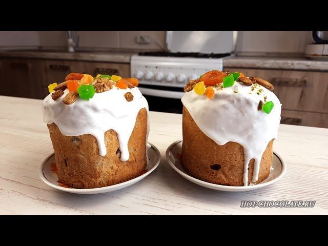 Добрый день! Я хочу поделиться с вами рецептом вкусного и нежного кулича. Пошаговый рецепт здесь: https://hot-chocolate.ru/recipes/velikodnij-paskhalnyj-kulich/ . Я буду печь мягкие и воздушные великодние куличики. Дорогие хозяюшки, надеюсь вам понравится мой рецепт! РЕЦЕПТ ТЕСТА ДЛЯ 3 КУЛИЧЕЙ D=11 см.: ‣ просеянная мука — 600 г (5 стаканов до риски), ‣ сахар — 260 г (1,5 стакана), ‣ тёплое молоко — 1 стакан до риски (200 мл), ‣ сливочное масло — 160 г, ‣ растительное масло без запаха — 1 ст. ложка, ‣ сырые дрожжи — 30 г (или 10 г сухих дрожжей), ‣ яйцо С1 — 2 шт., ‣ водка — 2 ст. ложки, ‣ соль — 0,5 ч. ложки, ‣ ванилин — 2 упаковки (2 -3 г), ‣ цедра 1 апельсина (по желанию), ‣ изюм - 140 г. _Я использую гранёный стакан объёмом 200 мл._ Бумажные формы D=11 см - 3 штуки. ОПАРА: 0,5 стакана тёплого молока и 0,5 стакана муки, дрожжи и 1 ст. ложка сахара (всё от общего количества в рецепте). СДОБА: сахар, соль, сливочное масло, яйца, молоко, водка, ванилин. Добавить подошедшую опару. В ТЕСТО: мука, растительное масло, изюм. РЕЖИМ ВЫПЕЧКИ: при 170 - 160 ℃ в духовке в режиме верх/низ без конвекции 50 — 60 минут. ‣ Опара подходит около 20 минут. ‣ Тесто подходит 2 - 5 часов в зависимости от температуры помещения. ‣ В формах тесто подходит около 1 часа. ДЛЯ УКРАШЕНИЯ КУЛИЧЕЙ ‣ глазурь, ‣ кондитерская посыпка, ‣ любые орехи ( миндаль, фисташки, грецкие орехи), ‣ сухофрукты ( курага, чернослив), ‣ цукаты. Рецепт желатиновой глазури здесь: https://hot-chocolate.ru/recipes/zhelatinovaya-glazur-dlya-kulichej/ .