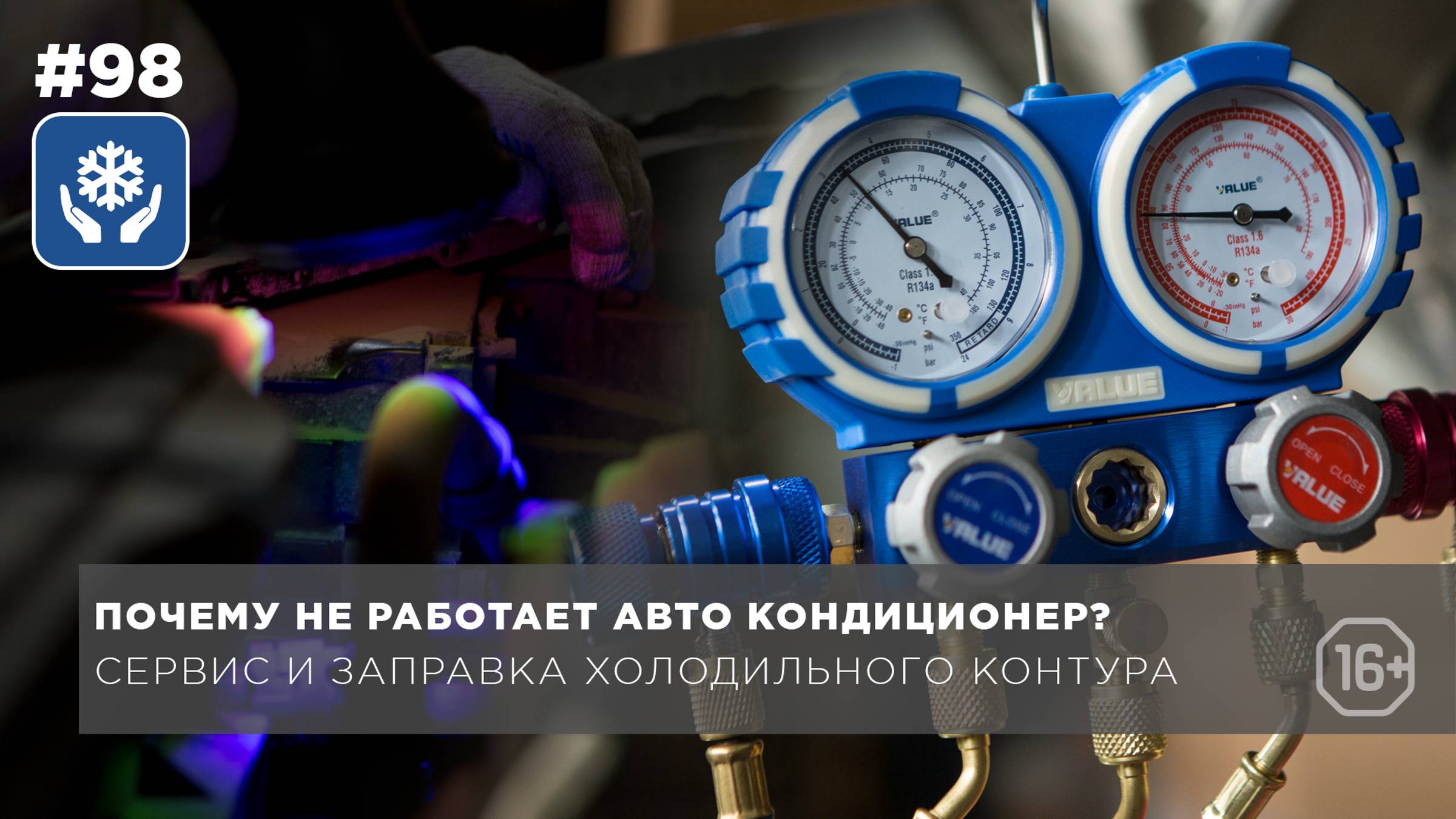 *Все инструменты и расходные материалы, используемые в видео, можно приобрести в наших магазинах и на сайте https://marcon-kholod.ru/ #заправкаавтокондиционера #вакуумноемасло #промарт #марконхолод #promart Представим типичную ситуацию: на дворе жаркое лето, на часах 7:30 утра, впереди рабочий день, полный разъездов по городу. Ключ на старт – запускаем движок. Включаем кондиционер, а холода нет. Даём немного оборотов – начинает слегка морозить. Но, уткнувшись в первую пробку – холод кондиционера пропадает окончательно. Эти симптомы красноречиво говорят о том, что ближайшие выходные машина проведёт в сервисе. И это если не будет очереди из пациентов с похожей историей. Возникает логичный вопрос: почему со временем кондиционер перестаёт выдавать холод? На то есть несколько очевидных причин. 1. Микроутечка фреона. По нормам автокондиционера небольшая утечка, примерно 10% - 15% за год – явление вполне допустимое. И чтобы компенсировать эти потери, достаточно своевременно проходить диагностику и сервисное обслуживание. 2. Утечка хладагента из-за износа уплотнительных колец системы. 3. Течь самого компрессора. Достаточно редкое явление, но имеющее место быть. Из-за производственного дефекта может место соединения двух половинок корпуса компрессора. 4. И конкретно наш случай – забитый грязью радиатор охлаждения двигателя и непосредственно конденсатор холодильного контура. Последний пункт с течением времени может организовать ряд дополнительных проблем. Из-за забитых грязью ламелей радиатора возрастает нагрузка на вентилятор охлаждения. Вследствие большой нагрузки быстро изнашиваются щётки и обмотка, а продукт износа, забиваясь в свою очередь под щётки, может привести к сгоранию блока управления вентилятором. Далее из-за возросшей температуры начинает гореть масло. Прогорклое масло рано или поздно способствует образованию кислоты в контуре, что приводит к выходу из строя самого компрессора и попутно образованию областей протечки фреона. После очистки радиатора, необходимо по новой заправить систему, предварительно произведя вакуумацию. Если речь идёт не о сервис-центре, а о гараже, где подразумевается самостоятельная работа без автоматических станций, то нам понадобится определённый перечень инструментов и расходных материалов: - запас хладагента, - весы, - холодильное масло для определённого типа компрессора, - УФ-детектор микропротечек, - вакуумный насос, - манометрическая станция со шкалой для хладона R134a - соответствующие заправочные шланги, - инжектор, - сервисный набор уплотнительных колец - герметик Заправляем насос свежим вакуумным маслом. Снаряжаем и устанавливаем Мансфилд. Фиксируем быстросъёмные муфты, идущие в комплекте. Подключаемся к системе к портам высокого и низкого давления. Заранее готовим детектор микро протечек 7,5 мл и 40 гр. холодильного масла. Производим вакуумацию системы. Через порт низкого давления воздухом попутно забрасываем смесь масла и УФ-присадки в контур. Как только вакуум достигнут, перекрываем соответствующий вентиль и выключаем насос. Готовимся к заправке системы. Сам процесс будет проходить по жидкой фазе. Перед заправкой из шланга фреоном вытесняем воздух. Вся необходимая техническая информация относительно заправки приведена на шильдике под капотом . Для системы данного автомобиля требуется 500 гр.