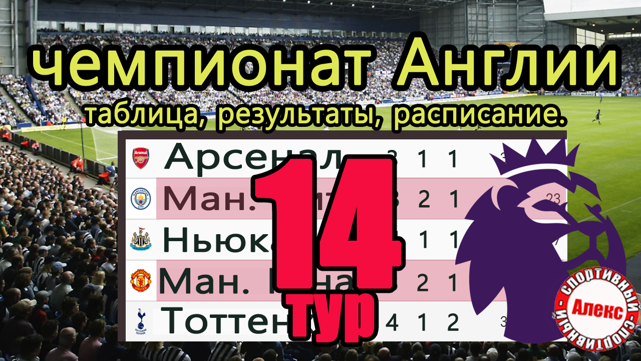 Чемпионат Англии (АПЛ) 14 тур. Результаты, расписание, таблица. Ман. Сити – Тоттенхэм + ТОП 4 лиги.