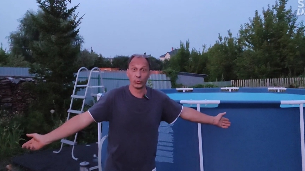 сливаем воду из бассейна с помощью подручных средств