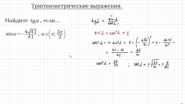 Определение тангенса - это то что нужно знать наизусть. И опять работаем через тригонометрическое тождество, которое нужно знать наизусть. Так же вам потребуется тригонометрическая окружность. И всё будет легко!
