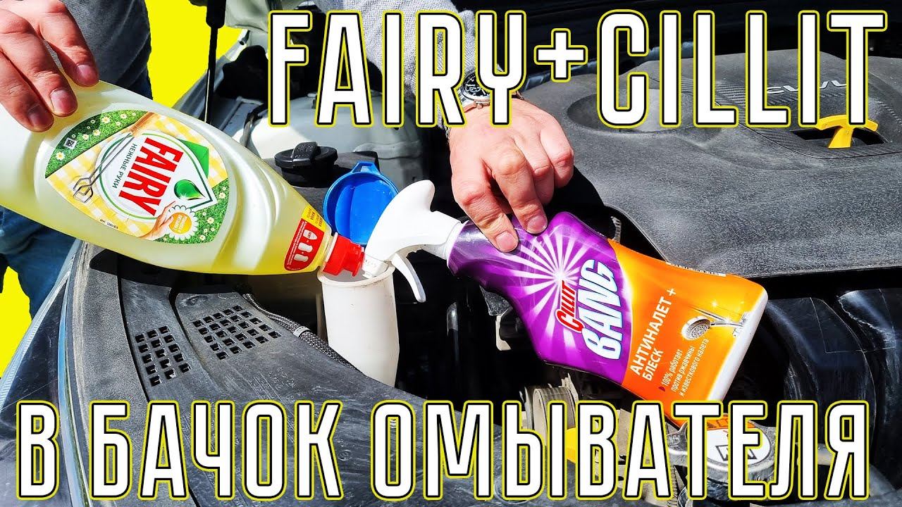 FAIRY + CILLIT в бачок омывателя. ИДЕАЛЬНАЯ ЛЕТНЯЯ ОМЫВАЙКА