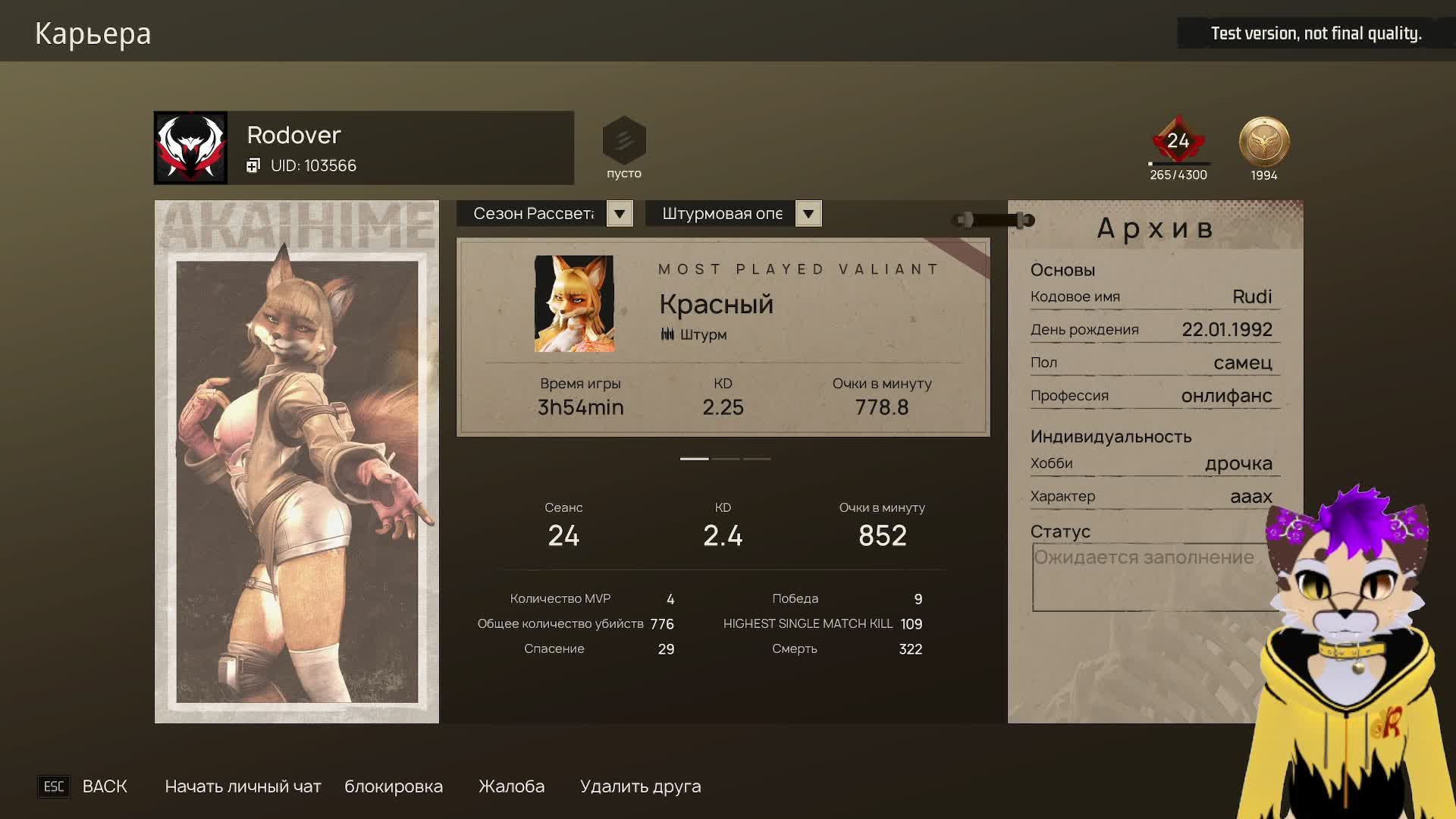 Подписывайтесь на ХатУ, там можно в Обсуждениях задавать вопросы и заказывать игры на прохождения, пока что бесплатно! https://vk.com/streamer_dimon_38reg Вот ссылки на донат в прямой эфир! Donation Alerts: https://www.donationalerts.com/r/dimon_38reg DonatePay: https://new.donatepay.ru/@DIMON_38REG И ещё, мне можно отправлять в эфир МЕМАСИКИ! Если интересно, испытайте функцию! https://memealerts.com/DIMON_38REG Если хотите оплатить без выстрела в прямой эфир, буду рад вашему подарку! YooMoney, 3 варианта, может какой-нибудь и сработает из-за границы закинуть: Карта МИР 2204 1201 0833 3994 Лицевой счёт 4100 1947 3782 22 Прямая ссылка на оплату https://yoomoney.ru/to/41001947378222 Кошелёк Payeer, вроде принимает все валюты, даже криптовалюту! P46223790 попробуйте, может что-то получится! #Furry #WildAssault #DIMON_38REG #VTuber #Фурри #Cat #BeastHuntingRaid #兽猎突袭 #Action #MOBA #MMO #BetaTest #QoSTest #Cooperative #NetworkCooperative #Multiplayer #HeroicShooter #Shooter #Game #Battlefield #Anthropomorphic #Animals #Антропоморфный #Животные #ГеройскийШутер #Шутер #Экшен #Кооператив #СетевойКооператив #Мультиплеер #Игра #БетаТест