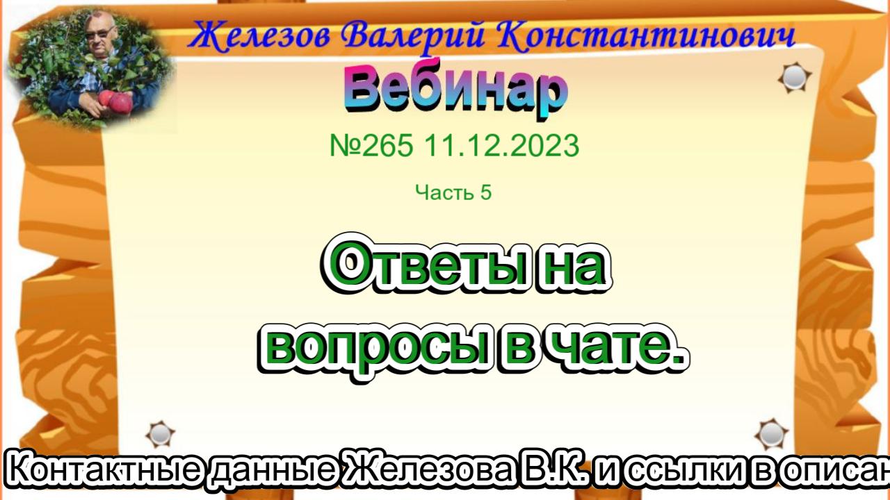 Железов Валерий. Вебинар 265. ч.5. Ответы на вопросы в чате.