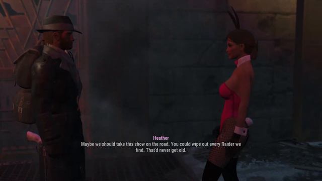 The Silver Shroud is here to take down Kendra! Heather also wants to be the Mistress of Mystery and gives her opinion of the Silver Shroud taking down raiders. Heather Casdin - A Unique Companion Experience by llamaRCA https://www.nexusmods.com/fallout4/mods/23273 Bunnygirl Outfit - CBBE - AWKCR https://www.nexusmods.com/fallout4/mods/16798