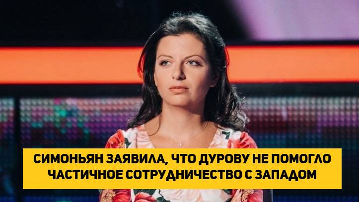 Симоньян заявила, что Дурову не помогло частичное сотрудничество с Западом